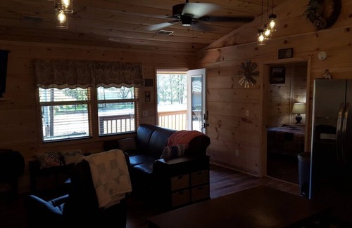 Relájate en el jardín y disfruta de servicios como los muebles de exterior, o tómate algo en el porche o patio de esta cabaña.Para cambiar un poco, entra y disfruta del wifi gratis y de la televisión por satélite o cable.