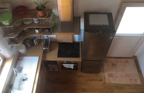 Encontrará en la planta baja una cocina equipada con horno, nevera, lavavajillas, tostadora y hervidor de agua, placa de gas. Junto a la sala de polvo con una ducha, lavabo e inodoro que están secos.