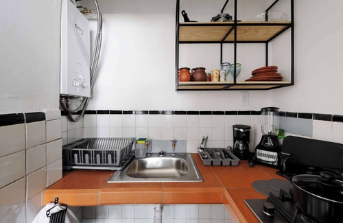 Adéntrate en el corazón histórico de la Ciudad de México en Edificio Aurora. Este departamento remodelado de los años 50 conserva detalles de época, un elevador con operador y vistas espectaculares a la Plaza Santo Domingo y otros iconos cercanos.