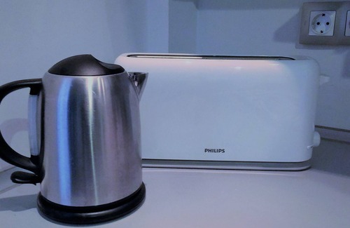 La cocina es nueva, con microondas, tostadora, hervidor de agua, placa de tres quemadores y cafetera de cápsulas (Nespresso), todo el equipo necesario para cocinar, así como sal, azúcar, aceite, té y especias.