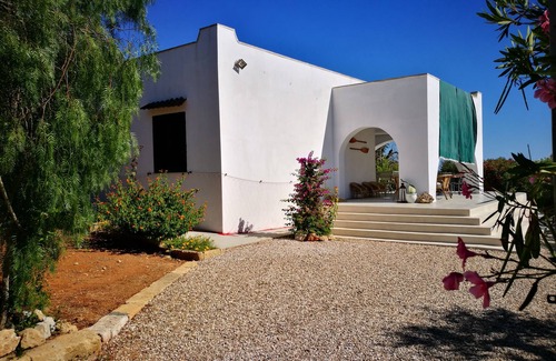 Un montón de flores (adelfas, buganvillas, acacias, hibiscos) y árboles frutales (olivos, higos, limones, uvas) le dan la bienvenida en Villa Livia, una típica villa mediterránea, situada cerca de una de las playas más famosas de Apulia, Pescoluse ( literalmente alcance de peces).
