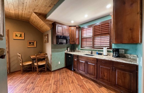 En lo alto de las colinas de Paso Robles, en el distrito estelar de AVA de la región vinícola de la costa central, se encuentran The Gables en el Rockin ’K. ¡The Rockin ’K te da la bienvenida con una atención de lujo tan lujosa que nunca querrás irte! El plan de piso de flujo continuo crea espacio para el entretenimiento tanto formal como informal, y la cocina gourmet es un punto focal para la reunión. Disfrute de la mejor vida en el patio al aire libre: las puertas del comedor se abren a un horno de pizza al aire libre que quema madera y áreas de comedor con vista a la piscina infinita. Disfrute de una piscina climatizada con energía solar entre mayo y septiembre, calienta unos 10 grados por encima de la temperatura del aire. También encontrará una cocina completa al aire libre totalmente equipada con barra húmeda. No dejes de lado la hermosa área de la chimenea al aire libre, cuando quieras un fuego cálido y una copa de vino local. La terraza del patio lateral ofrece vistas a los árboles frutales, olivos y viñedos, todos cultivados por los propietarios de la propiedad. A medida que continúa caminando, la galería continúa con asientos de mimbre clásico y ofrece vistas nocturnas de las luces de Paso Robles en la distancia. Una habitación de matrimonio con un baño y medio en la planta baja y cuatro habitaciones con dos baños completos en la planta superior. Con dos suites principales disponibles, una suite principal incluye un televisor de pantalla plana de 48 ", un baño bien equipado con bañera con patas y acceso a un balcón privado que ofrece más vistas. El sexto dormitorio es la segunda suite principal: un apartamento en el piso de arriba de 900 pies cuadrados en la parte posterior de la casa, que incluye hermosos techos abovedados de pino, cocineta, lujoso baño de mármol, TV de pantalla plana de 50 "con vistas extendidas y más. Todos los huéspedes disfrutan de acceso a la bien equipada Man Cave, que cuenta con una notable colección de guitarras Kramer personalizadas, una mesa de billar, un televisor de pantalla grande y un gran bar antiguo. The Gables le da la bienvenida con los brazos abiertos y lo invita a que sus expectativas sean superadas. Capacidad para 12 personas muy cómodamente. Aparcamiento disponible en el sitio para un máximo de 7 coches. Si organiza el transporte de vino local, póngase en contacto con nosotros por adelantado para obtener más detalles. Absolutamente no se permiten vehículos recreativos ni campistas en esta propiedad.