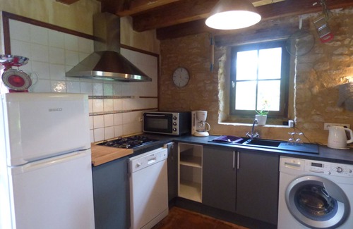 La casa ofrece en la planta baja 1 aseo, 1 cuarto de baño (bañera con mampara de ducha), un salón / comedor (sofá convertible en cama esquina cómoda 140x200 cm) y una cocina de la siguiente manera: horno , horno de microondas, cuatro hornillos de gas, nevera / congelador, cafetera, tortas parrilla ', hervidor eléctrico, batidora de mano eléctrico, lavavajillas, lavadora, secadora, ...