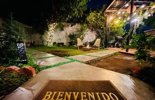 This is an elegant home designed and made with much love that can accommodate 5-8 people. This booking is for a private 2 bedroom home with plenty of living spaces. You will notice a theme in this home of design, paint and plants that make it a vibrant and uplifting environment. Stay at one of El Salvador's greatest location, also known as the Beverley Hills of El Salvador (Escalon). A safe area with 24-hour security at your front door, 4 embassies in the area, major hotels, malls with city and volcano view!