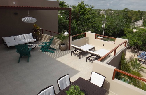 Elegante ático, terraza en la azotea con vistas, jardín y piscina, estacionamiento | Condominio en Tulum