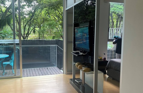 Hermoso y elegante apartastudio, con la mejor ubicación de la ciudad , pueden haber otros sitios en esta zona pero dudo que ofrezcan los espacios agradable y las ganas de que los huéspedes se sientan como en su casa. Tiene al lado un parque para caminar o hacer ejercicio, también cer a un gimnasio grande . Fácil acceso a transporte .. lugar ideal para pasar su estancia en la ciuda de Cali.