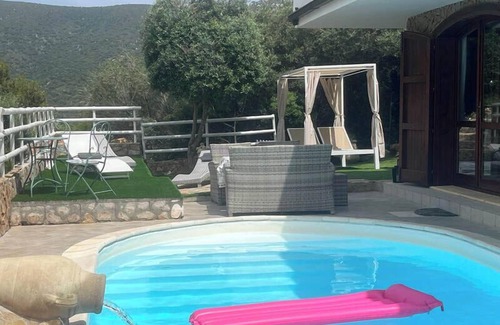 Porción de villa con piscina privada ubicada frente a la playa de arena blanca de Cann'esisa. De reciente construcción, está amueblado con buen gusto y tiene aire acondicionado en todas las habitaciones.