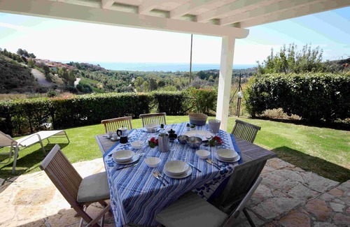La Villa Carola está ubicada en el borde de la pequeña zona residencial Eden Rock, enclavada en un matorral mediterráneo con hermosas vistas al campo y al mar, a pocos minutos en coche de las hermosas playas de Chia y a pocos metros de la larga playa de arena de Santa Margherita di Pula. La casa está dividida en tres habitaciones dobles (una con baño privado), un total de tres baños y una habitación individual con cama supletoria, 8 camas en total y es parte de tres casas que comparten una piscina (8 x 4 m). Hay aire acondicionado en toda la casa, hay una lavadora y un lavaplatos, Wi-Fi está disponible y hay varias plazas de aparcamiento, una barbacoa y muebles de patio. La terraza cubierta con vistas abiertas al mar es parte de la acogedora sala de estar (TV vía satélite), que se fusiona con la cocina comedor. Separada por un pasillo también hay una habitación doble con un baño contiguo en la planta baja disponible. En el sótano hay dos dormitorios dobles más (uno con baño en suite), otro baño y una habitación individual, que también se puede usar como habitación doble. La electricidad, como sábanas y toallas son extra.