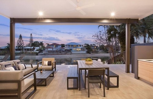 Hay tantas opciones para los niños en esta gran casa espaciosa, tiene múltiples áreas al aire libre que abarcan la piscina y vistas al agua y en el interior hay una sala de juegos con mesa de billar y mesa de ping pong, una sala multimedia con Playstation y otra sala de estar en el nivel superior para simplemente relajarse. Pueden pescar o navegar en kayak desde el embarcadero o jugar en la playa arenosa. Con el maravilloso clima de Gold Coast, también puedes aprovechar la piscina climatizada durante todo el año.