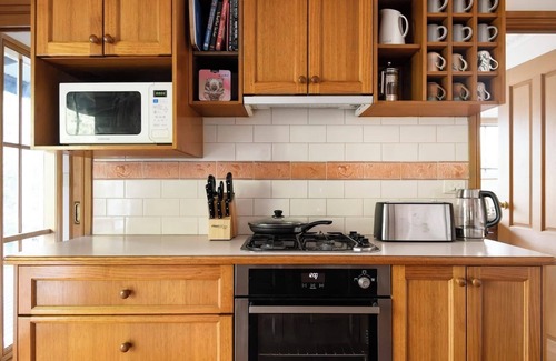Este alojamiento de 2 dormitorios y 1 baño cuenta con chimenea y aire acondicionado. La cocina está equipada con horno, placa de cocina y frigorífico, además de cafetera y tetera, microondas y utensilios de cocina. Y no tendrás que llevarte ropa de más, porque también hay acceso a una lavandería.