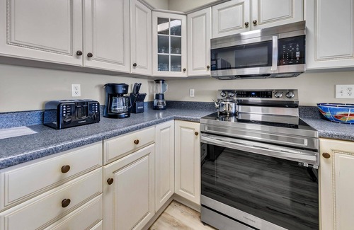 Commodore's Retreat unit 402 es un condominio de 2 habitaciones con un loft con capacidad para 10. Rey en el maestro con baño privado, cama de matrimonio en el segundo dormitorio con baño de salón. El loft de arriba tiene 2 juegos de literas gemelas y una cama queen también. Cocina llena. La unidad también tiene una lavadora y secadora de tamaño completo.