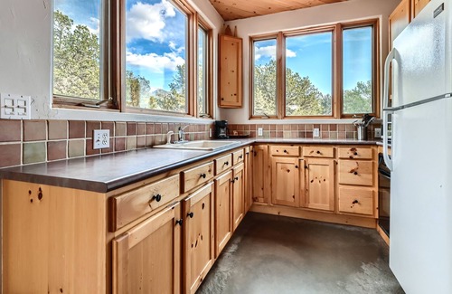 Cuando entras por la puerta de la Casita, sientes la energía acogedora de este dulce lugar. Fue creada utilizando principios arquitectónicos de geometría sagrada. Las vistas de las montañas Sangre de Cristo, especialmente Kit Carson, son impresionantes. La casa está ubicada en 2 1/2 acres de tierra, bordeada por tierras nacionales y serenata por los suaves sonidos de Willow Creek. La comunidad de Crestone es compartida por una amplia gama de centros espirituales y de la nueva era, y también es la meca de la arquitectura alternativa, verde y sagrada. Con una vida silvestre prolífica y una naturaleza exquisita, este es un lugar ideal para su retiro.