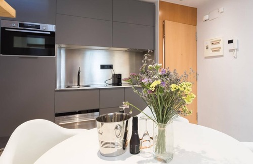 Este encantador apartamento con gran terraza privada en Sant Gervasi para alquiler mensual tiene aproximadamente 65 m² y se encuentra en un edificio con ascensor. El diseño limpio y moderno de este apartamento y sus electrodomésticos lo hacen cómodo para cualquier visitante. La puerta corredera de cristal y las ventanas que dan a la terraza permiten que entre la luz del sol, haciendo del apartamento un espacio luminoso y aireado. Además, está muy cerca de la Avenida Diagonal y tiene excelentes conexiones con el transporte público.