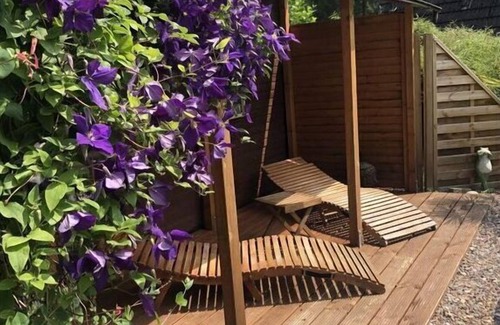 Casa del bosque de cuento de hadas con piscina y sauna de barril exterior justo en el bosque. Vives en una casa de madera moderna y con amor en el espacio de vida de 60 metros cuadrados con un dormitorio, un sofá cama en la sala de estar, una cocina totalmente equipada y un baño cómodo. La propiedad completamente cercada de 700 SQM2 tiene acceso bosque directo y lo invita a caminatas forestales o recorridos para bicicletas. Refresione en un cóctel en la piscina interna y disfrute de una sesión de sauna en la sauna de barril. Todo era opcional en la propiedad forestal. Cocina: cocina de vapor, cocción de inducción alimentada, lavavajillas, tostadora, tetera, máquina de caza de café. Área de vida: cama sofá 1.60 m x 2.00 m, área de comedor en el mostrador, mesa del comedor con 4 sillas, calefacción de techo infrarroja, estufa de pellets, televisión inteligente, acceso wifi gratuito. Baño: Acceso a ducha tardía con ducha de lluvia, calefacción por infrarrojos de espigel, secadora de lavado. Dormitorio: cama doble 1.60 m x 2.00 m, vestuario, techo infrarrojo, televisión inteligente Exterior