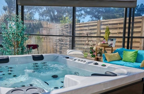 Este alojamiento de vacaciones está clasificado 3 estrellas para 2 personas por el Comité Departamental de las Landas; Se encuentra en el espacio de un reconocido instituto de relajación durante más de 8 años en Biscarrosse: Escale Bien Etre, Spa. De este modo, podrá acceder a los muchos servicios ofrecidos por Escale Bien-Etre (hammam, jacuzzi, masajes, exfoliaciones, reflexología, etc.) sin siquiera abandonar los terrenos de la propiedad y con toda discreción (http : // spa. laplumeverte. com).