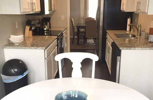 Nueva remodelación de arriba a abajo, todos los muebles nuevos. Hermosa sala de estar con marco y chimenea. El comedor lleva a la cocina de la cocina con encimeras de granito y desayunador con ventana salediza. Gran dormitorio principal con walk-in closet y TV privada. Litera y dos camas individuales en el primer dormitorio a la izquierda de la entrada. Dormitorio de la reina al lado del segundo baño. Lavadora / secadora y todos los nuevos electrodomésticos de cocina de acero inoxidable. Asientos de cubierta para dos personas con patio debajo.