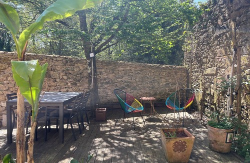 Jardín privado de 120 m² – Disfrute de una hermosa terraza de madera sin vecinos a la vista, equipada con una barbacoa para veladas acogedoras, una mesa de ping-pong para momentos divertidos y una hamaca para relajarse.