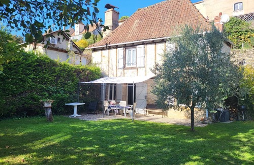 Jardín cerrado de 300m2 a lo largo del Azlou con acceso directo. Terraza, tomar el sol, muebles de jardín, sombrilla, barbacoa.