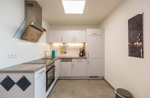 Dirección 24159 Kiel, Fliegender Holländer 23, segundo piso APP 137Este elegante apartamento de 1 ½ habitaciones se encuentra en el segundo Piso en el Olympiahafen Schilksee hacia el lado de la tierra y ofrece, además del gran balcón en el sudoeste, un ambiente moderno y relajado para sentirse bien. Descripción: Este 2017 apartamento completamente renovado y con mobiliario moderno está completamente inundado de luz a través de las ventanas del piso al techo en dirección suroeste y lo invita a sentirse cómodo con el brillante piso laminado. Por una pared retraída de media altura, el área de entrada está separada ópticamente de la sala de estar y el comedor. Por lo tanto, el apartamento tiene un carácter de loft. En la zona del pasillo hay un trastero y un armario. En la sala de estar, una gran mesa de madera con cuatro sillas cómodas ofrece suficiente espacio, ideal para una comida en grupo. Justo enfrente se encuentra la cocina equipada contigua. La cocina abierta con superficie de trabajo con apariencia de concreto está equipada con electrodomésticos de alta calidad. La vitrocerámica, el horno, el microondas y el lavavajillas, la nevera con congelador separado, el hervidor, la tostadora y la cafetera ofrecen instalaciones casi como en casa. En la amplia sala de estar encontrará un cómodo sofá. Con solo unos pocos toques, se puede convertir en un cómodo sofá cama (160 x 200) y ofrece más espacio para hasta 2 personas. Desde el sofá, las acogedoras noches de televisión no dejan nada que desear: un televisor LCD con conexión USB y por cable ofrece la posibilidad de tener su home cinema de vacaciones. El apartamento también está equipado con conexión Wi-Fi gratuita y un sistema estéreo. El baño, bien cuidado, tiene una ducha grande (ducha de lluvia y ducha de mano) y un radiador de toallas. El dormitorio tiene una cama doble (200x160) y está alfombrado. Una luz o La protección de la privacidad, que oscurece bien el área de dormir, está disponible, así como en la sala de estar. El balcón, que ocupa todo el ancho del apartamento, está equipado con una mesa y sillas y un toldo. Debido a la ubicación del sudoeste, puede disfrutar del sol al máximo por la noche. Característica especial En el Flying Dutchman 23 hay más apartamentos de nosotros (Laser II, Backboard y White Pearl). Esto puede ser una ventaja si necesita más alojamiento para más personas. ¡Habla con nosotros!En el apartamento dispones de wifi gratuito. Se incluyen 2 toallas por persona (no toallas de playa) y ropa de cama, así como paños de cocina, que encontrará a su llegada al apartamento. Este apartamento es un apartamento para no fumadores. Le invitamos a fumar en el balcón, gracias por su comprensión. El apartamento también es adecuado para personas alérgicas, ya que no se admiten animales. A este apartamento también pertenece una plaza de aparcamiento. Tambi��n es posible almacenar bicicletas en un área cerrada al aire libre.