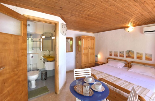 Tradicional Villa Erika es parte de los complejos ESPORADAS SECRET panorámicas privadas. Tiene una gran terraza panorámica cubierta en tres lados y se puede dormir en el interior, gracias a su salón convertible hasta un máx. de 6 personas. En su interior se encuentra la sala de estar convertible con cocina para el desayuno, dormitorio principal y cuarto de baño con ducha. Todas las habitaciones principales tienen acceso directo a la terraza panorámica. Desde el porche de acceso a la cocina cubierta al aire libre con barbacoa y horno de pizza, fregadero y la estufa de gas.