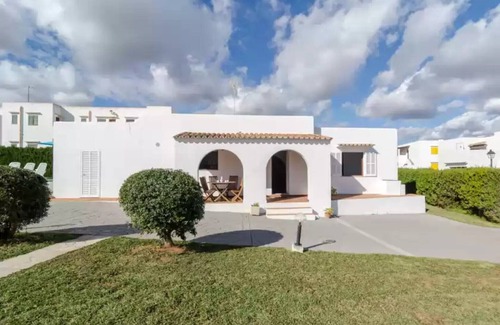 Distribución: salón, cocina(fogón, cafetera, horno), dormitorio(cama individual, cama individual), dormitorio(cama doble), dormitorio(cama doble), cuarto de baño, cuarto de baño, microondas, nevera con congelador , bañera, ducha, lavabo, lavabo, váter, váter, jardín, muebles de jardín, 2x tumbonas, barbacoa, 2x sombrilla, cama infantil, trona