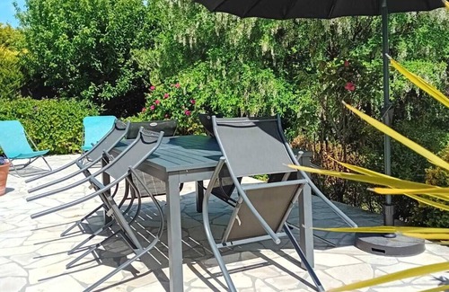 Casa independiente para 6 personas sin frente con amplio jardín de 1500 m2, con todas las comodidades. Situado 1. 5 kilometros de la playa ya 1 km de las tiendas.