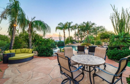 El Oasis es un Resort privado en el corazón de North Scottsdale. Este lujoso alojamiento está recién amueblado con un exquisito diseño del suroeste. Ofreciendo detalles personalizados en cada una de las siete habitaciones, sin excepción a la cocina Chef atmosférica llena de electrodomésticos de primera línea, así como la Gran Mesa de comedor al aire libre, así como la nevera al aire libre, la máquina de hielo, la parrilla y el ahumador. Siéntate y disfruta del paisaje impresionante.