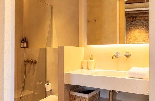 Este estudio dispone de elementos de la estructura original, como techos con vigas y paredes de ladrillo a la vista. Cuenta con cama doble y baño privado. Incluye un sofá, TV y zona de cocina con nevera, cafetera y hervidor de agua.