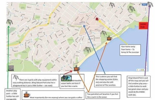 900m hasta Bar Beach - con café Swell