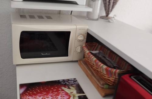La zona de cocina (conocido en los EE.UU.) se compone de: Un conjunto mueble de cocina (arriba / abajo) hundir 1 plato, 1 escurridor, 2 cocina eléctrica con extractor, microondas, cafetera, tetera, tostadora , lavavajillas, refrigerador está en la liberación + un juego de cubiertos, vajilla y todos los accesorios necesarios para 4/6 personas para cocinar y las comidas.