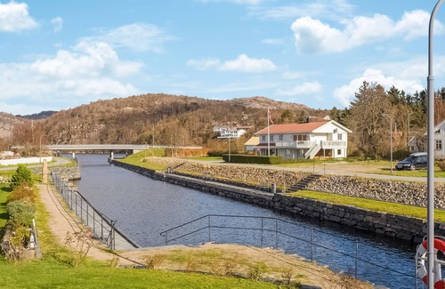 Situated directly on the Spangereid Canal, this beautiful vacation home in southern Norway invites you to enjoy a vacation that you will remember for a long time. The stylish flair of the house offers a peaceful atmosphere for a relaxing stay. You can prepare delicious meals in your spacious kitchen and serve them at the beautiful dining table, which becomes the focal point for lively conversations during meals. The living room is also a cozy place with its comfy sofa corner and warm fireplace, ideal for cozy family evenings. Enjoy the view of the tranquil canal and the enchanting surrounding landscapes from the spacious terrace.