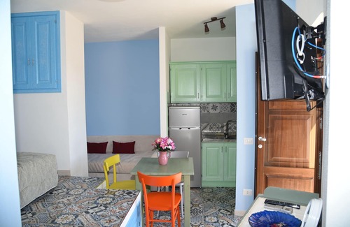Cómodo apartamento tipo estudio, recientemente renovado, muy refinado en la elección de materiales y muebles, diseñado para alojar a 3 personas (1 pareja + 1 individual). Hay 1 sofá cama para uno y medio y 1 sofá cama individual. El mobiliario también consta de una cocina y un área de comedor: TV, funcional y completa con todos los accesorios. El lujoso baño también tiene una lavadora y un tanque de agua.