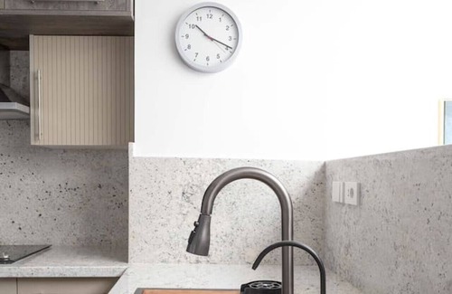 La cocina está equipada con horno, placa de cocina y frigorífico, además de microondas y utensilios de cocina. Y no tendrás que llevarte ropa de más, porque podrás aprovechar la lavadora y la secadora. Otras comodidades incluyen ropa de cama, una tabla de planchar, aire acondicionado y calefacción.