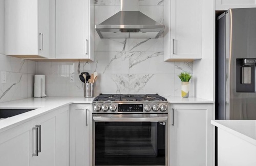 La cocina está equipada con horno, placa de cocina y frigorífico, además de cafetera y tetera, microondas y utensilios de cocina. Conéctate al wifi gratis, o relájate frente a un Smart TV. El cuarto de baño incluye un secador de pelo y toallas. Podrás viajar con poco equipaje, porque tendrás una lavadora y una secadora a tu disposición. Otras comodidades de este alojamiento de 4 dormitorios y 3.5 baños incluyen ropa de cama, una tabla de planchar, aire acondicionado y calefacción.