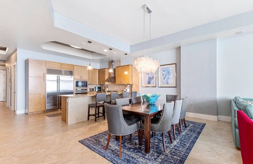 Unidad 2205D. El lujo es lo que viene a la mente cuando uno piensa en Turquoise Place, desde las habitaciones de gran tamaño hasta la bañera de hidromasaje en el balcón, los desarrolladores de Turquoise no repararon en gastos. Esta unidad de 3 dormitorios y 3. 5 baños está decorada con buen gusto, teniendo en cuenta la comodidad, el confort y la relajación. La unidad cuenta con una sala familiar extra grande para grandes reuniones con un sofá y una cocina gourmet. El principal cuenta con una cama king size con su propio baño privado y zona de estar con sofá, la habitación cuenta con una cama king con baño privado, y el tercer dormitorio cuenta con literas dobles y una cama doble y baño privado. Hay más de 2,300 pies cuadrados de espacio habitable. Televisores extra grandes con sonido envolvente en la sala de estar y suite principal. El balcón extragrande incluye una cocina al aire libre con parrilla de gas natural y una bañera de hidromasaje privada. El balcón tiene zonas de estar y comedor con vistas al hermoso Golfo de México.