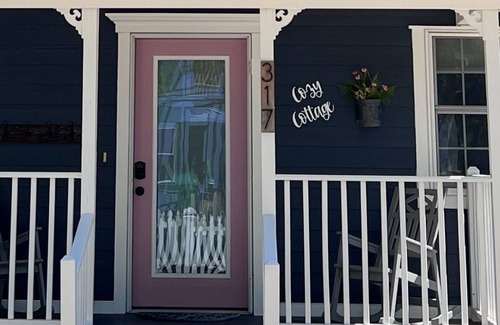 The Cozy Cottage es el hogar perfecto para 2 parejas o una familia de 4. Algunas de las características de esta casa incluyen pisos de madera, encimeras de mármol, electrodomésticos de acero inoxidable, lavadora / secadora, puertas estilo casa de 9 pies y acceso inalámbrico a Internet. Parrilla de gas, pozo de fuego y mesa de picnic justo afuera de su puerta.