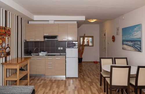 Esta hermosa casa unifamiliar con varias unidades residenciales se encuentra en el pequeño pueblo pesquero de Dramalj, en la Riviera de Crikvenica. El piso de 38 m2, bien equipado, consta de un salón-comedor con cocina americana y sofá cama, un dormitorio y un cuarto de baño con ducha y WC. Un pequeño balcón pertenece al piso.