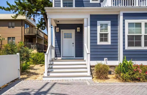 Impresionante casa nueva con piscina privada (climatizada) en el centro de la casa. ¡Esta hermosa casa de 5 dormitorios y 5 1/2 baños está a solo 1 minuto a pie de la playa (en el bloque del océano)! Solo algunas de las comodidades que ofrecemos: aire acondicionado central con termostatos separados en ambos niveles. 8 televisores de pantalla plana ROKU (uno en cada habitación, uno en la sala de sol, sala familiar de arriba (60 pulgadas) y sala de estar principal (60 pulgadas). Baldosas de cerámica con aspecto de madera dura en todo el primer piso, excepto en las habitaciones que tienen alfombras lujosamente suaves. Internet inalámbrico de alta velocidad. ¡La ducha exterior junto a la entrada lateral te lleva a un maravilloso baño con lavadero! Esta casa ofrece un balcón privado cubierto en el Queen MBR del piso de arriba, un asador a gas Broil King en la terraza de la piscina y un hermoso solárium para relajarse con una taza de café y un buen libro.