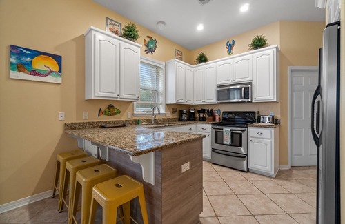 La propiedad tiene un bonito porche cubierto que conduce a la sala principal, que tiene un 40 "pantalla plana HD TV, DVD y sofá cama. dormitorio de matrimonio, 32 'TV de pantalla plana de alta definición y baño privado. comedor de 6 puestos. La cocina tiene encimeras de granito, electrodomésticos de acero inoxidable y un pequeño bar. Cuarto de lavado con lavadora / secadora apiladas. Hay un dormitorio con 2 camas individuales y baño compartido. Otro dormitorio doble con baño compartido.