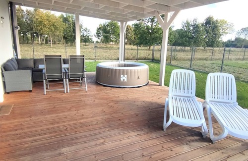 Ferienhaus 70qm bis 5 Gäste, Sauna, Whirlpool, 75qm Terrasse Eingezäuntem Garten | Casa en Sieroslaw