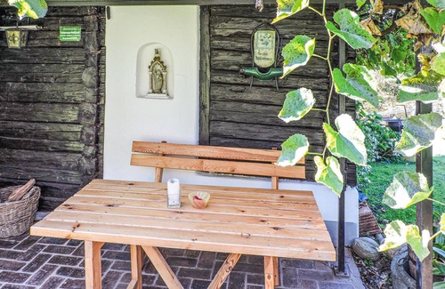Esta casa de vacaciones amueblada de forma tradicional le espera en un lugar idílico. Déjese seducir por su encanto rústico y disfrute de acogedoras veladas junto a la estufa de azulejos. Da unas vueltas en la piscina, compartida con otros huéspedes, o desafía a tus compañeros de viaje a una partida de ping-pong.
