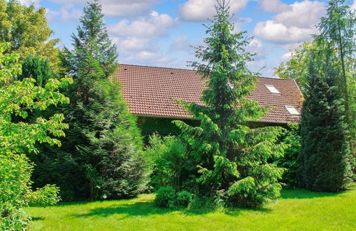 Idílicamente situado al borde del bosque en Linow, el apartamento de vacaciones para un máximo de 2 adultos y 1 niño se encuentra en una propiedad residencial y natural de 4.000 metros cuadrados con una villa (la casa de los propietarios) y un antiguo molino harinero en un edificio anexo. El carril bici de larga distancia E10, que conecta los pueblos vecinos, pasa directamente por delante de la propiedad. El piso galería diáfano se encuentra en la planta superior de la dependencia residencial, ampliada en 2010, y se accede a él por una entrada independiente a través de una escalera exterior. Está equipado con una sala de estar y dormitorio (muebles tapizados, cama doble, sofá cama, TV, radio, chimenea), una cocina y comedor (cocina americana con cocina eléctrica, nevera con congelador, mesa de comedor, varios aparatos de cocina), un cuarto de baño (ducha, WC) y tiene calefacción central. Debido a la inclinación del tejado, el piso sólo es parcialmente adecuado para personas de más de 1,95 metros. Hay un hermoso jardín natural con muchos nichos, zonas para sentarse, tumbonas, un estanque de jardín, un lugar para hacer hogueras, un invernadero y un prado. El propietario ofrece seminarios y talleres sobre baños de bosque, hierbas silvestres y alimentación sana. (La filosofía de los anfitriones es llegar, relajarse y disfrutar. Por esta razón no hay WLAN disponible. El precio total incluye limpieza final, ropa de cama, toallas, agua y energía. Mascotas: Se admite un perro pequeño de hasta 40 cm.