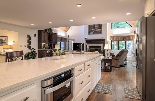 La sala de estar es lo más destacado de este alquiler! Con una gran sala de estar abierta, chimenea de leña (perfecto para S'mores), centro de entretenimiento, una selección de la biblioteca de DVD / VHS con más de 100 + películas (incluye una selección grande de DVD / VHS para los niños) y más de 20 juegos de mesa / puzzels - vas a vivir en el lujo de la montaña! Nuestra biblioteca libro tiene una selección de libros "clásicos". Hemos de leña en la casa para nuestros huéspedes durante todo el año. Incluso tenemos algunos equipos de ejercicio y un futbolín.