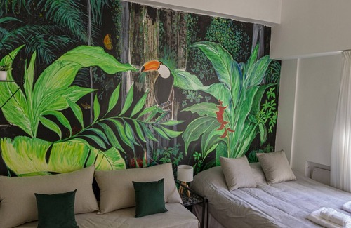 El departamento cuenta con un ambiente cómodo y bien iluminado que incluye una cama matrimonial y un cómodo sillón adaptable a cama individual, ideal para una tercera persona. También cuenta con aire acondicionado y acceso a internet de alta velocidad para asegurarte una estancia confortable y conectada.