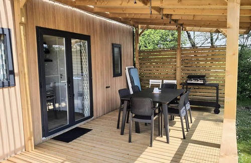 Flower Camping Le Château *** - Homeflower Premium 35m2 3 bedrooms + TV + dishwasher + air conditioning + terrace XL semi-covered 6 people | Casa en HAUTERIVES