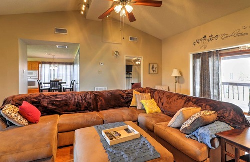 Cuando necesite algo de tiempo para relajarse sin preocupaciones, siéntese en el amplio sofá de la sala de estar mientras mira televisión o se pone al día con las noticias mientras la chimenea de piedra lo mantiene caliente todo el día.