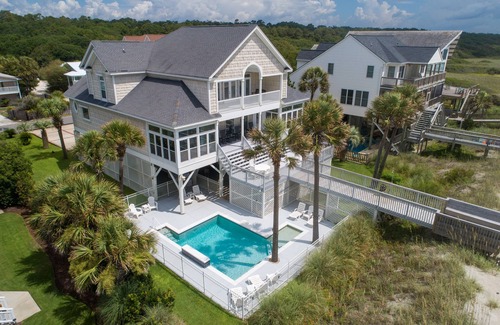 Casa distintiva frente al mar con piscina, ascensor a todas las plantas y playa privada. Cinco habitaciones con dos camas queen size en cada una y un rey principal con jacuzzi. Decoración elegante con habitaciones temáticas que reflejan los viajes internacionales de los propietarios. Dos porches acristalados, balcón, terraza y terraza con mecedoras. Bar en la planta baja con parrilla y hamaca. Amplio estacionamiento pavimentado. Una casa diseñada para el confort y la elegancia.