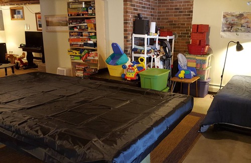 Además, un altillo alfombrado que da a la sala de estar apto para dormir. También hay 2 sofás (1 es plegable) y una cama de día en la sala de recreo del sótano (que incluye una mesa de billar).