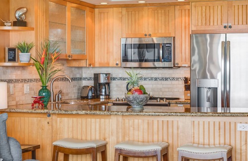 ¡Hay tanto que disfrutar y hacer! Puede relajarse en el Lanai mientras disfruta de un cóctel, ya que las olas rompen a solo unos metros de distancia. O puede dirigirse a la playa para tomar una lección de surf o tal vez hacer un poco de surf en las olas. Más tarde, golpea los putting greens o desafía a un amigo a un juego de tenis en las canchas cercanas. Relájese en una de las dos piscinas mientras trabaja en su bronceado, luego disfrute de una sesión de remojo en la tina de burbujas. De vuelta en el condominio, puede conectarse a WiFi para publicar las fotos de su viaje mientras navega por los canales de cable en el sofá. Prepare un plato en la cocina, luego cene en el Lanai y disfrute de la brisa marina que entra.