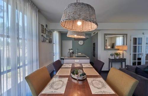 Enjoy the outdoors in your private garden, complete with a covered terrace, luxurious garden furniture, and sunbeds. The villa's highlight is its private, heated swimming pool (open from April 26th to September 27th), perfect for a refreshing swim. As evening approaches, the barbecue awaits for you to enjoy a meal under the stars. Free Wi-Fi is also available.